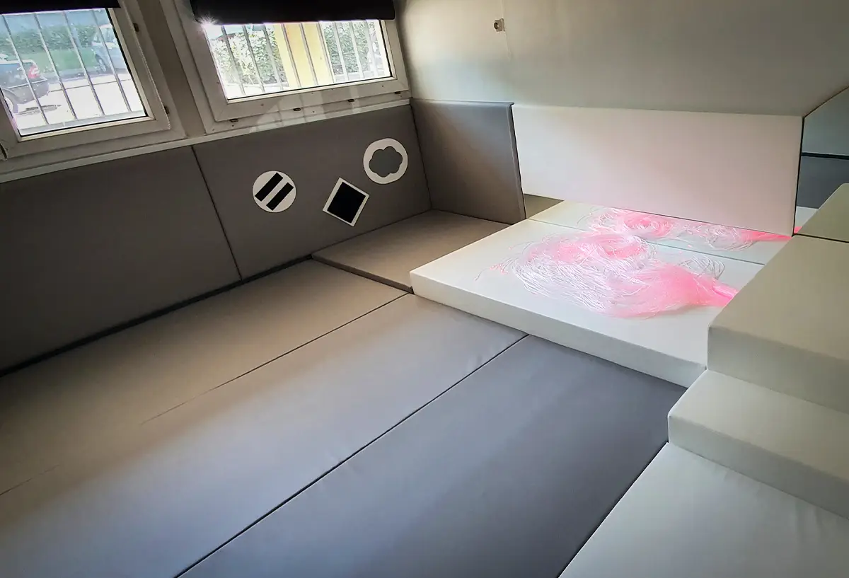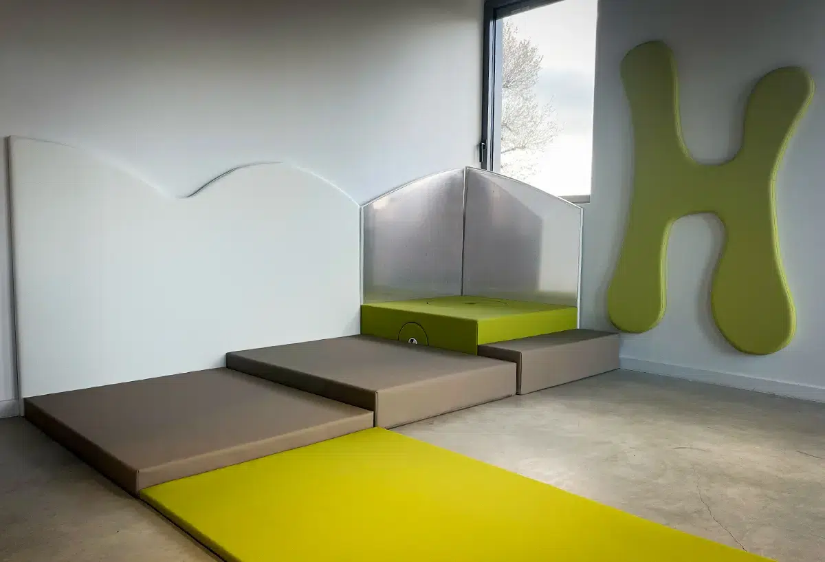 Nous réalisons des aménagements sensoriels modulables inspirés de l’approche Snoezelen, permettant de structurer des espaces apaisants, sécurisés et adaptés aux besoins spécifiques des enfants et des patients en établissement médical.