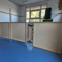Barrières modulables en bois qui permettent de séparer les espaces quelle que soit leur largeur. Ces barrières équipées de patins se manipulent facilement, et se rabattent facilement contre le mur et n’entravent ainsi pas l’espace de vie.