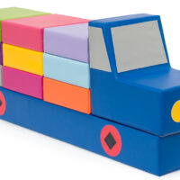 9 poufs rassemblés sur cette structure de camion en mousse. Une solution compacte et ludique qui connait à chaque fois un grand succès au sein des crèches !