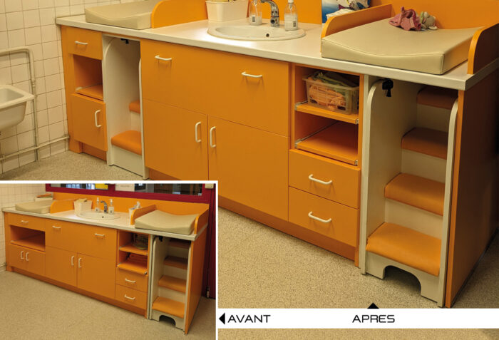 Il est désormais demandé aux structures d’accueil de la petite enfance de disposer d’un escalier pour accéder au meuble de change.
