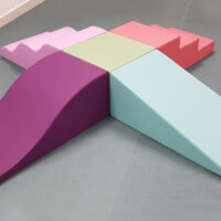 Le kit évolution long vous propose un assemblage de 4 modules comprenant les 3 vagues, l’escalier 3 marches, la pente glisse et la pente vague réunis autour du cube central.