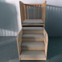 Structure bois ou mélaminé. Marche en bois et mousse avec revêtement skaï. Barrière de sécurisé et tapis de change