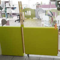 Ce portillon est composé de 2 parties. La première est fixée au sol. La seconde constitue le portillon. Il se manipule facilement , se ferme grâce à un velcros qui s’attache autour des 2 montants en bois.