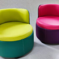 Une création HENRY : Nos chauffeuses rondes bicolores pleines de gaité pour que les petits puissent puissent s’assoir comme les grands !