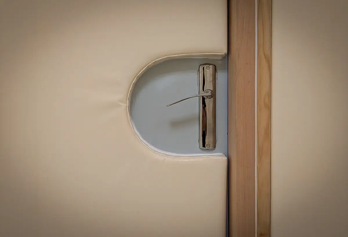 La salle d’apaisement capitonnée est un espace sécurisé conçu pour favoriser le retour au calme des personnes ayant besoin d’un environnement contenant et rassurant.
