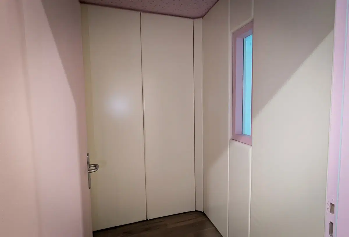 La salle d’apaisement capitonnée est conçue pour offrir un environnement sécurisé et rassurant aux personnes ayant besoin de retrouver le calme dans un espace adapté. Les murs sont recouverts de panneaux capitonnés permettant de créer un espace entièrement protégé et apaisant, adapté aux établissements médico-sociaux.